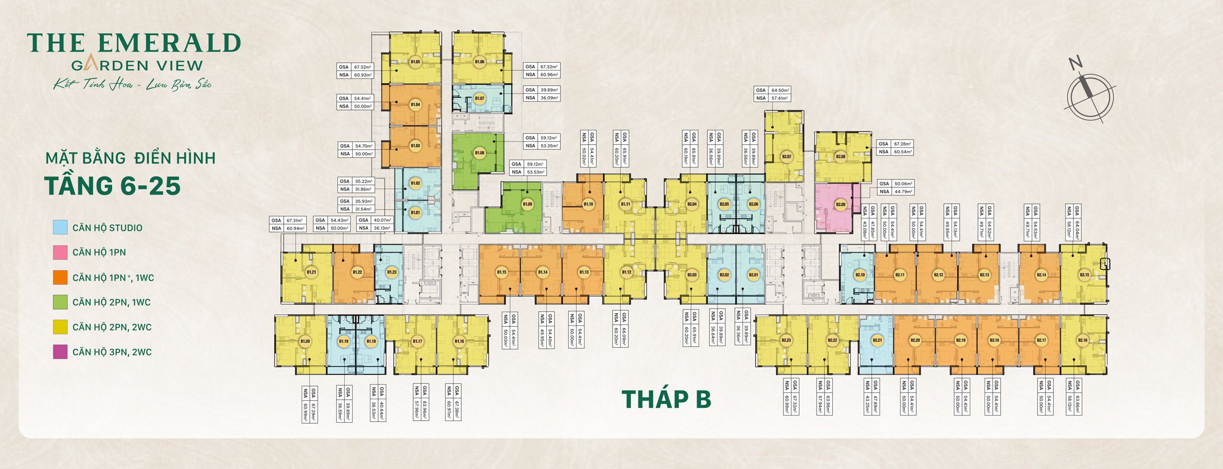 Mặt bằng Điển hình Tháp A Mặt bằng Điển hình Tháp B Căn hộ Studio Căn hộ 1PN, 1WC Căn hộ 1PN +,1WC Căn hộ 2PN, 1WC Căn hộ 2PN, 2WC Căn hộ 3PN, 2WC